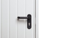 - Mit 2 Stahl-Streben als Torblattverstärkung und seitlich Kunststoff-Deckleiste mit Quetschschutz und Anschlagdämpfung, angebracht im unteren Bereich des Zargenrahmens.